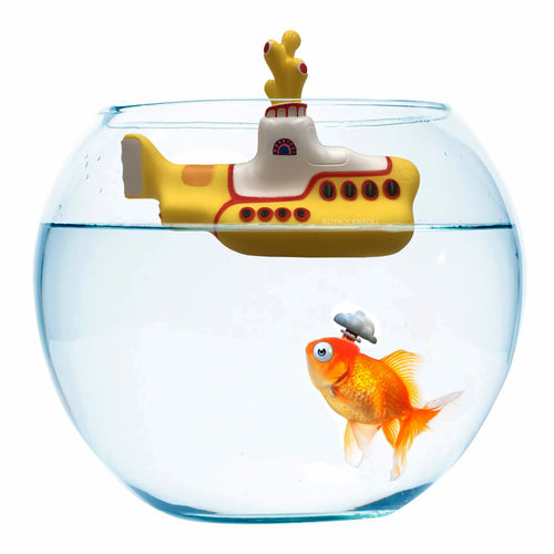This Yellow Submarine Waterglobe by Kurt Adler is a fun and festive addition to the holiday decor or collection of any Beatles fan! Inspired by the Beatles' animated film, it's clear 100mm globe houses a miniature Yellow Submarine soaring above Pepperland. The round yellow base features the wording, "The Beatles Yellow Submarine", as well as the four Beatles in their cartoon counterparts peeking out from round windows